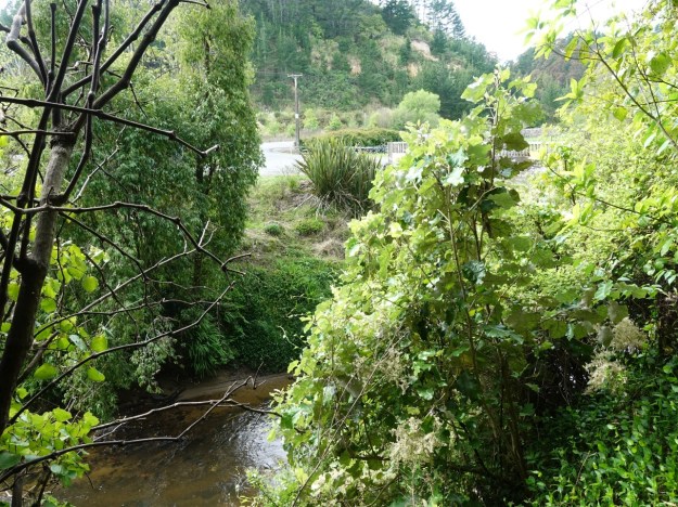Almost back at the start of the loop the track now runs alongside Waioho Stream, and the bridge and parking area are visible.