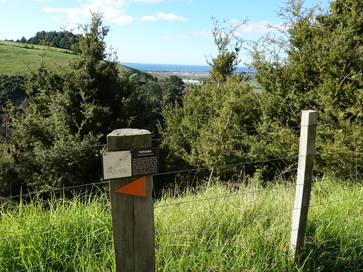 Although most of Te Rae o Papamoa Track in the Papamoa Hills Cultural Heritage Regional Park has been covered in a previous post an interesting extension to the track is now shown on some of the information panels within the park. It provides an alternative to the Karangaumu Summit Track for a walk to the summit, and since it can easily connect to the Valley and Puriri Tracks and on to Maraeroa Track it can provide a longer and more varied walk within the park area.