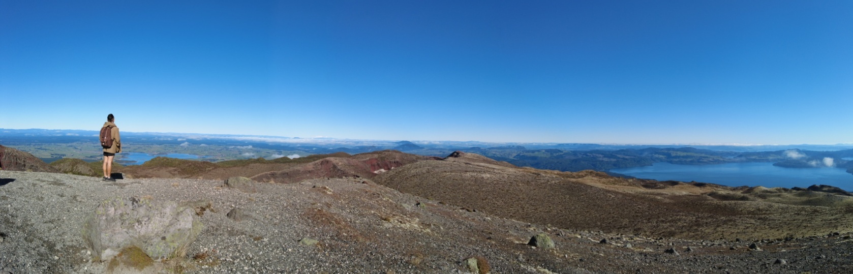 A couple of panoramic photos from the summit. In the second panorama Putauaki/Mt Edgecumbe is mostly hidden by cloud, just to the left of centre.