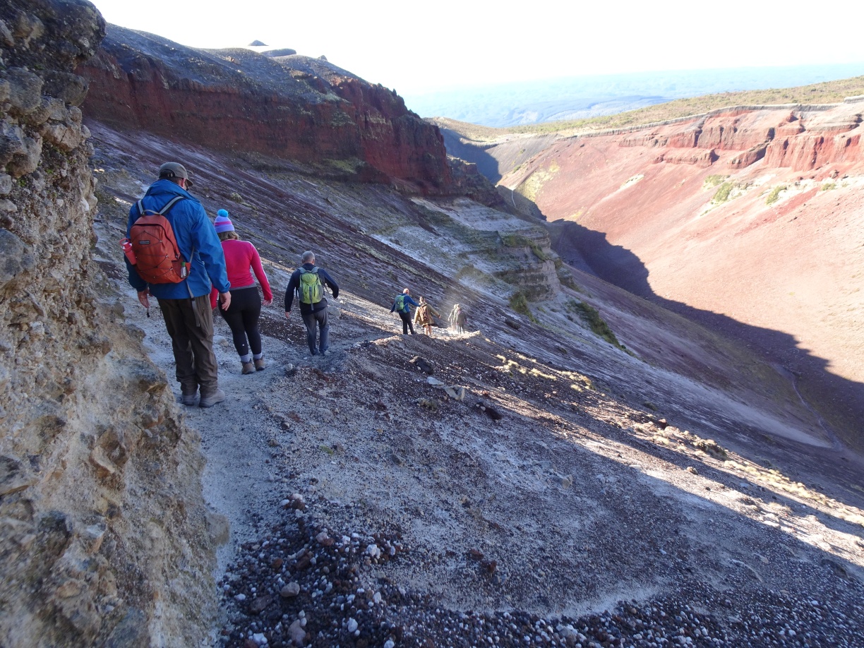 Starting out on the walk the gradient alongside the crater rim is quite gentle. Benches are placed at several locations, providing suitable places for a short rest and for information from the tour guides.
