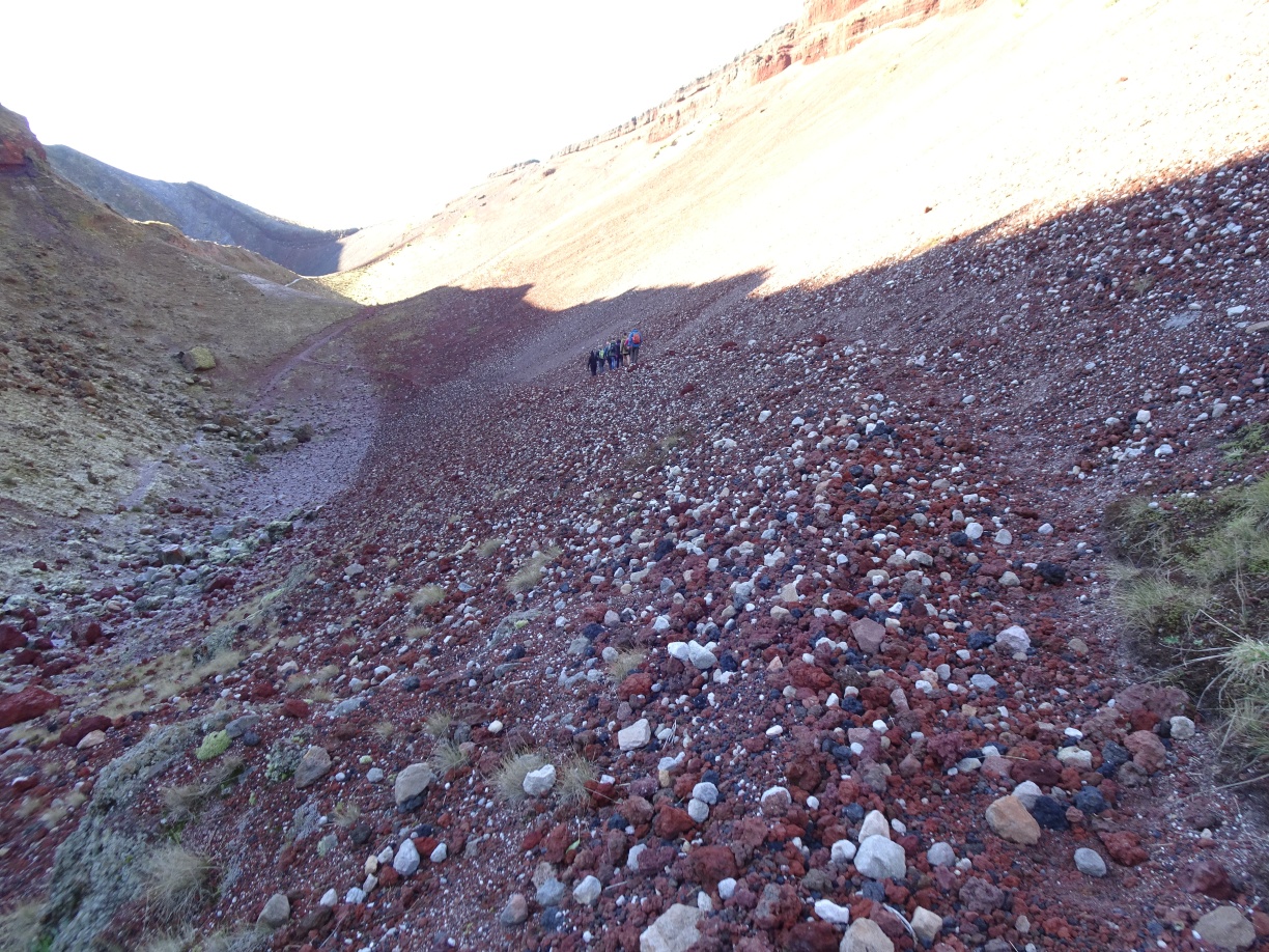 Heading down the steepest part of the descent. Some of the group including a guide had already reached the crater floor, jumping and flying down the slope.