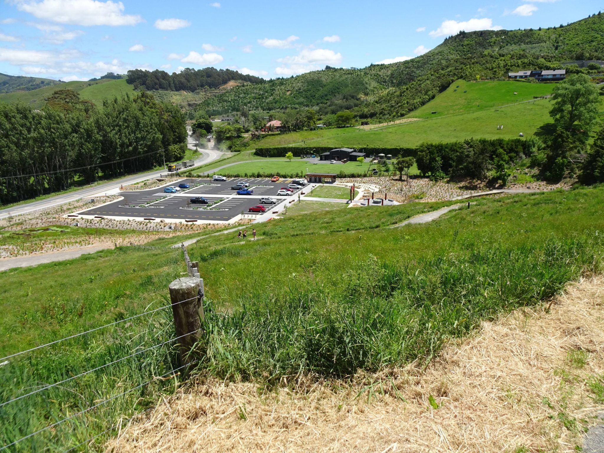 Looking back to the entry and carpark from the track to the summit.