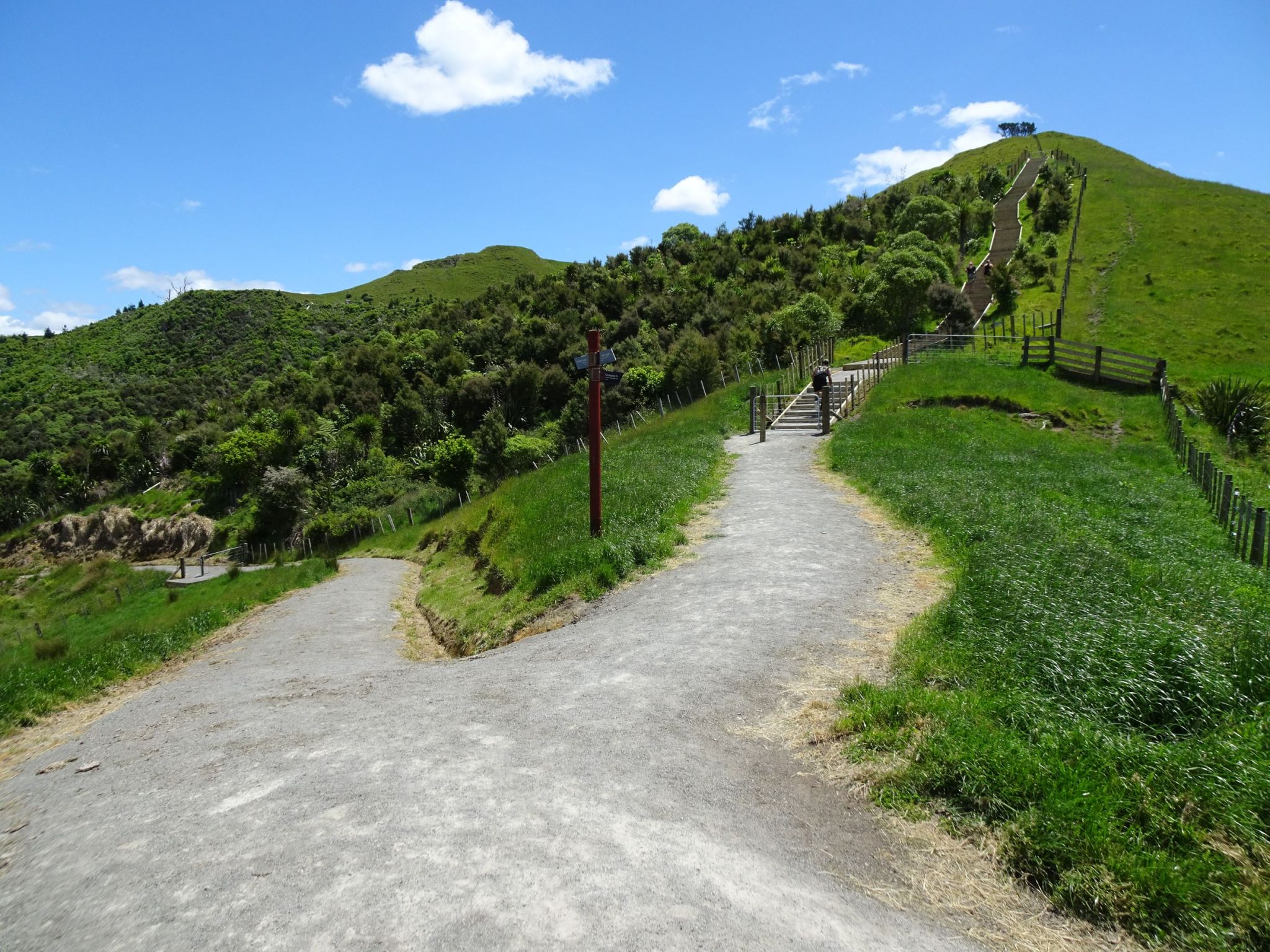 A new stairway has been built as part of the new track. The stairway has a total of 113 steps. The new track joins up with the original summit track at the top of the stairs. An alternative route, branching off to the left, leads to the old summit track without any steps.