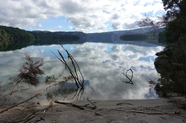 Eastern Okataina Walkway is a walkway through the Okataina Scenic Reserve connecting Lake Okataina at Tauranganui Bay at the southern end of Lake Okataina Road and Lake Tarawera at Humphries Bay (also known as Humphrey’s Bay). The walkway is about 10 km long, following the eastern shores of Lake Okataina for a large part of the way, crossing over a ridgeline with a climb of about 100 metres, and with a low saddle between Lake Okataina at Otangimoana Bay and Lake Tarawera at Humphries Bay. The walkway is mostly easy walking with no steps, but with a few short, steeper sections and some fallen trees requiring rougher, short detours.