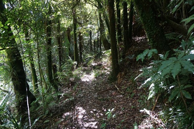 Dickey Flat Campsite in the Karangahake Gorge is the starting point of various walks in the Kaimai Mamaku Forest Park. The Mangakino Pack Track Loop is one of the longer and most difficult of the loop walks starting and ending at the campsite. The tracks making up this loop have various names depending on the source, which can be confusing. For example the Mangakino Pack Track is also known as Mangakino Track and Mangakino Stream Track. Dickey Flat is also called Dickey’s Flat on older DoC signs.